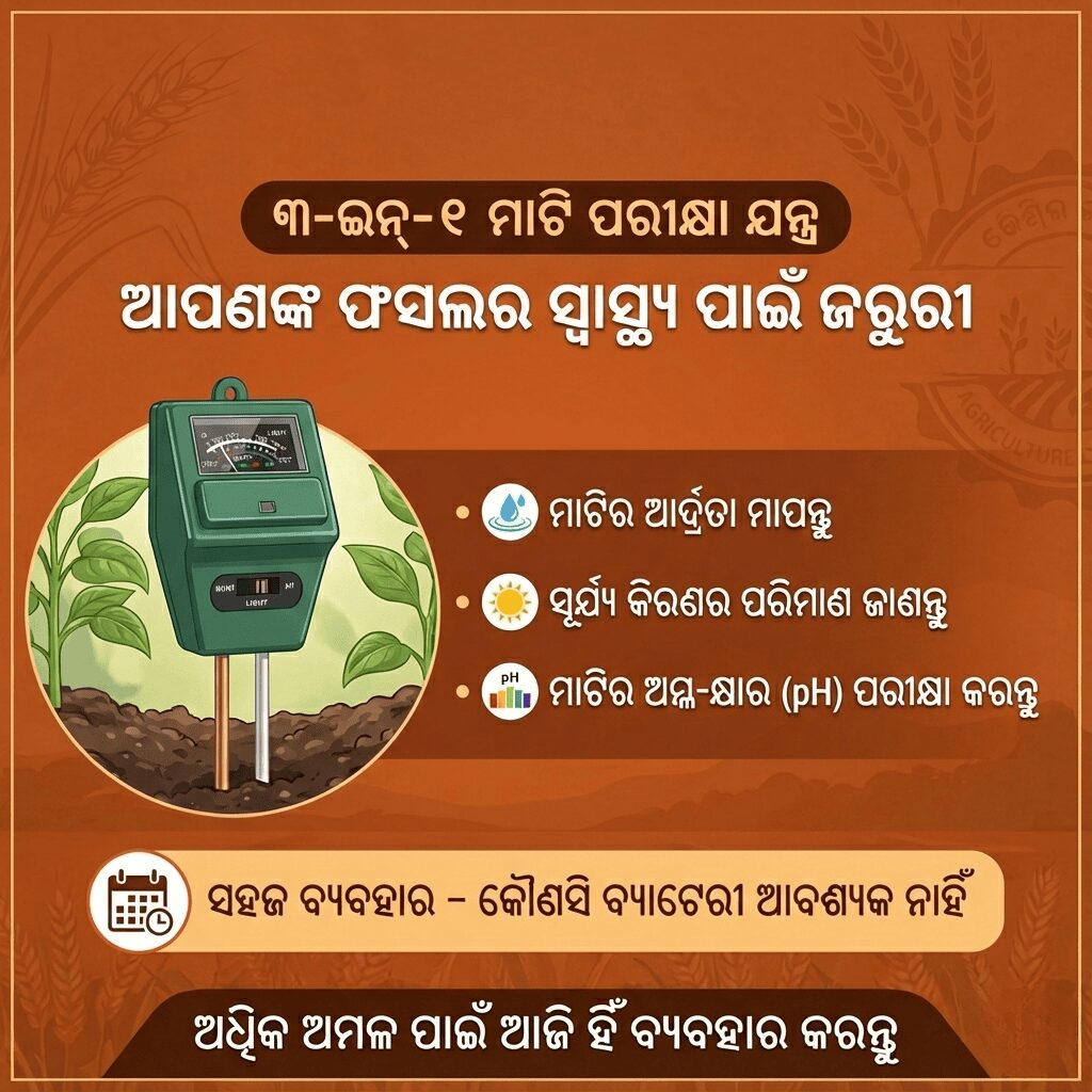 🌱 3-in-1 Multi-Meter Function (ତିନୋଟି କାମ ଗୋଟିଏ ମିଟରରେ):